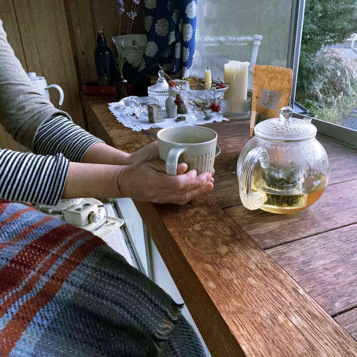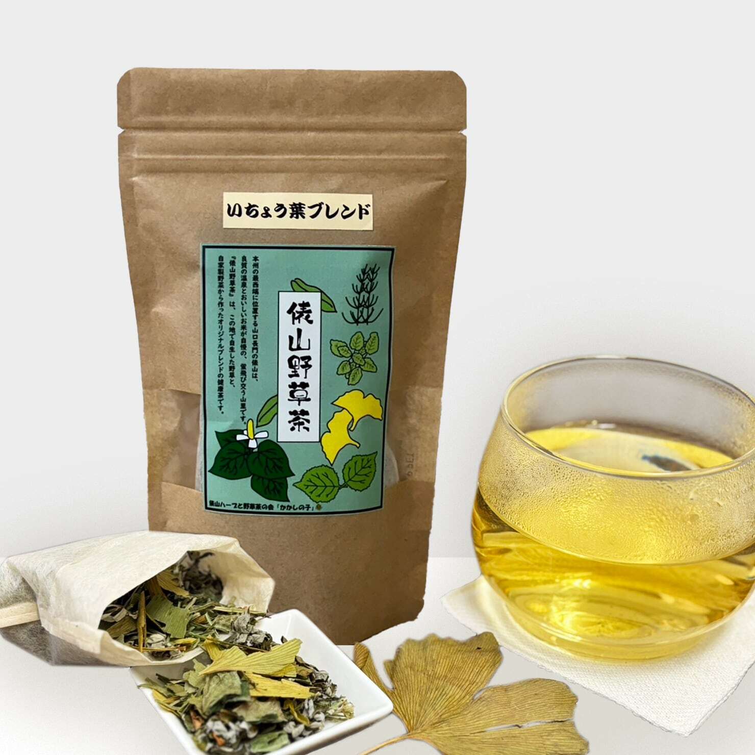 そこに住むおばあちゃんたちが、自生した野草を手間ひまかけて摘みとり、自家製野菜と一緒に丁寧に乾燥させて作った、オリジナルブレンドの手作り健康茶です。